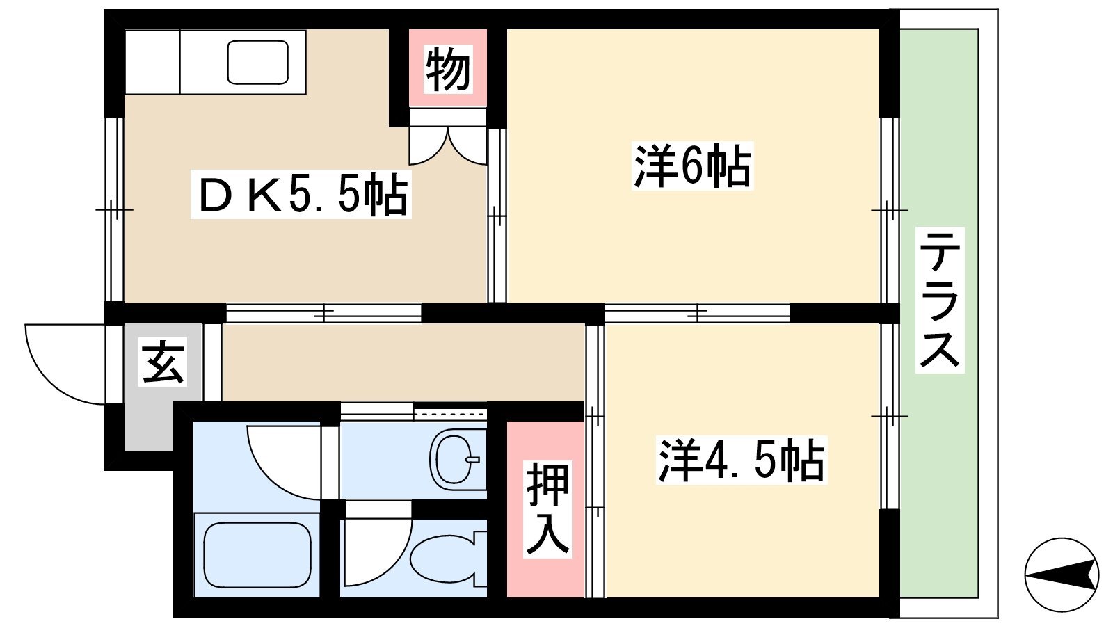 | 面積 | 39.27m2 - 44.95m2 | 間取り | 2DK |
